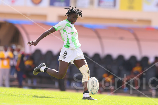 Freshia Oduor of Kenya Lionesses in action against Uganda during the 27th edition of the 2025 Safari Sevens Tournament at Nyayo National Stadium on October 11, 2025. Photo/Sportpicha
