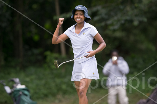 Bianca Ngecu celebrates sinking her putt during the 2026 All-Africa Junior Team Championship at the Windsor Golf Hotel and Country Club in Nairobi on March 25, 2026. Photo/Sportpicha