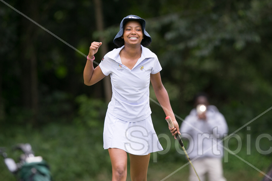 Bianca Ngecu celebrates sinking her putt during the 2026 All-Africa Junior Team Championship at the Windsor Golf Hotel and Country Club in Nairobi on March 25, 2026. Photo/Sportpicha