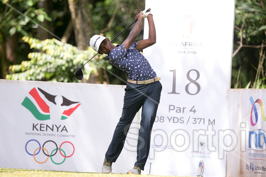 Mwathi Gicheru follows his tee shot during the 2026 All-Africa Junior Team Championship at the Windsor Golf Hotel and Country Club in Nairobi on March 25, 2026. Photo/Sportpicha