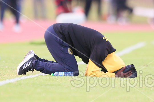 Tusker FC head coach Charles Okere celebrates victory against Bidco United FC during their Sportpesa League Match at the Kasarani Annex in Nairobi on November 07, 2025. Tusker FC won 1-0. Photo/Sportpicha