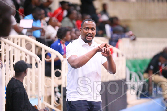 Umoja Basketball coach Isaac Kitungu instruct his charges against Ulinzi Warriors during their East Africa Basketball Champions Cup half Finals at Nyayo National Stadium on October 09, 2025. Photo/Sportpicha