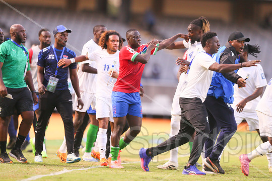 Gabon and Gambia players engage in a fight after their World Cup Qualifier match at Kasarani National Stadium on October 10, 2025. Photo/Sportpicha