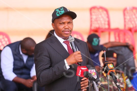 Principal Secretary (PS) for the State Department for Sports, Ministry of Youth Affairs, Creative Economy and Sports Elijah Mwangi make his speech during a press conference ahead of the first leg of the 2026 HSBC SVNS 2 tournament at Nyayo national stadium on February 11, 2026. Photo/Sportpicha