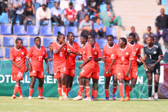 Kenya’s Junior Starlets players celebrate scoring against Namibia during the return leg of their 2026 FIFA U-17 Women’s World Cup qualifier at Ulinzi Sports Complex in Nairobi on April 18, 2026. Photo/Sportpicha