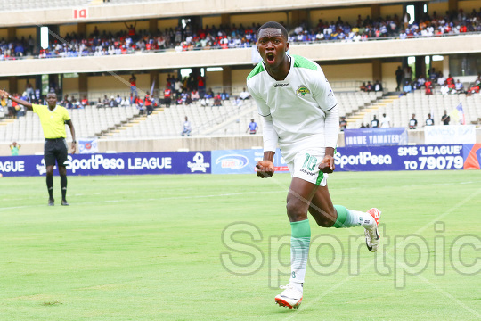 Humprey Omondi of Kariobangi Sharks FC celebrates scoring against AFC Leopards SC during the Sportpesa Premier League match at Kasarani Stadium on November 23, 2025. Photo/Sportpicha