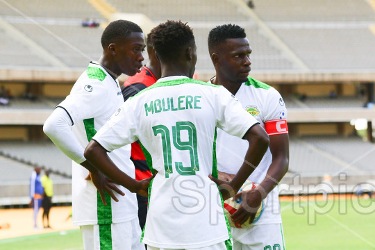 Kariobangi Sharks FC players led by captain Patilah Omoto (R) strategize against AFC Leopards SC during the Sportpesa Premier League match at Kasarani Stadium on November 23, 2025. Photo/Sportpicha