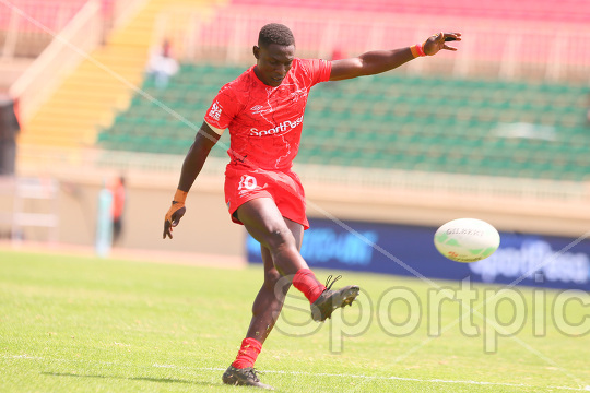 Nygel Pettersan Amaitsa of Kenya Shujaa takes a conversion against Canada during their 2026 HSBC SVNS 2 match at Nyayo Stadium on February 14, 2026. Kenya 7s secured a 29-12 victory. Photo/Sportpicha