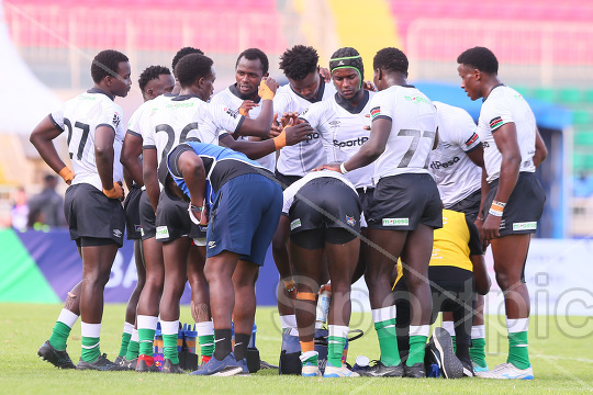 Kenya Morans players merge against Zimbabwe during the 27th edition of the 2025 Safari Sevens Tournament at Nyayo National Stadium on October 11, 2025. Photo/Sportpicha