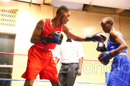 Abdi Mohammed (In Blue) of KDF fight Said Matano of Mombasa in their Minimum weight 48kgs category during Kenya Boxing Championship at Kaloleni Social Hall in Nairobi on April 01, 2026. Photo/Sportpicha