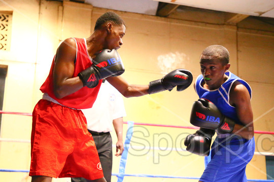 Abdi Mohammed (In Blue) of KDF fight Said Matano of Mombasa in their Minimum weight 48kgs category during Kenya Boxing Championship at Kaloleni Social Hall in Nairobi on April 01, 2026. Photo/Sportpicha