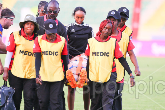 Medics attends to UK Select player Scribot Mahe after sustaining an injury against Kenya Shujaa during the 27th edition of the 2025 Safari Sevens Tournament at Nyayo National Stadium on October 11, 2025. Photo/Sportpicha