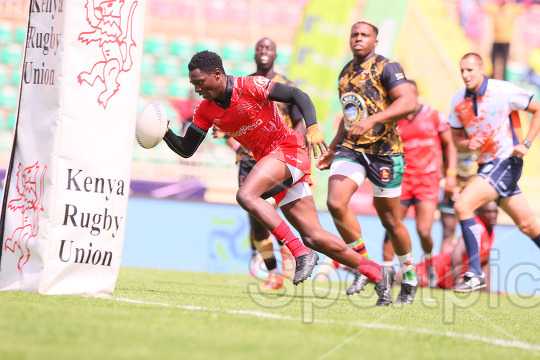 Nygel Amaitsa of Kenya Shujaa celebrates scoring against Zimbabwe during the 2025 Safari Sevens Tournament at Nyayo National Stadium on October 12, 2025. Photo/Sportpicha