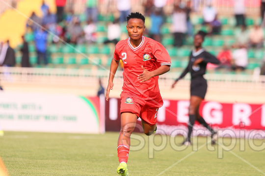 Harambee Starlets striker Mwanalima Adam celebrates scoring against Gambia during their Women's Africa Cup of Nations 2026 Qualifiers First Leg match at Nyayo National Stadium on October 24, 2025. Photo/Sportpicha