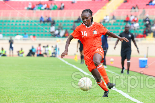 Harambee Starlets Enez Mango controls the ball against Gambia during their Women's Africa Cup of Nations 2026 Qualifiers First Leg match at Nyayo National Stadium on October 24, 2025. Photo/Sportpicha