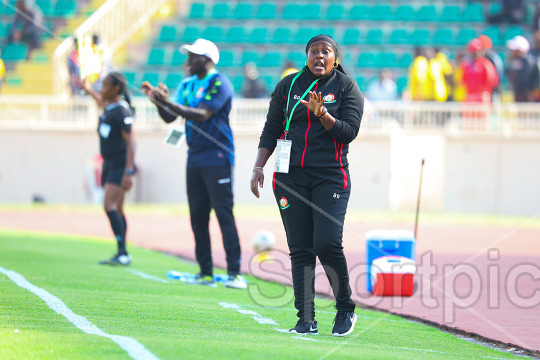 Harambee Starlets head coach Beldine Odemba reacts against Gambia during their Women's Africa Cup of Nations 2026 Qualifiers First Leg match at Nyayo National Stadium on October 24, 2025. Photo/Sportpicha