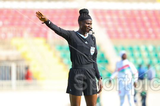 Centre Referee Aline Marie Guimbang A Etong Officiating Women's Africa Cup of Nations 2026 Qualifiers between Harambee Starlets against Gambia at Nyayo National Stadium on October 24, 2025. Photo/Sportpicha