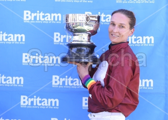 LesleySercombecelebrateswinningtheBritamKenyaGuinesstrophy