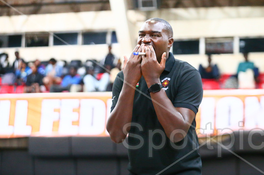 Snipers head coach William Ochieng reacts against MAB during their Kenya Basketball Federation league match at Nyayo Stadium Indoor gymnasium in Nairobi on March 28, 2026. MAB won 70-61. Photo/Sportpicha