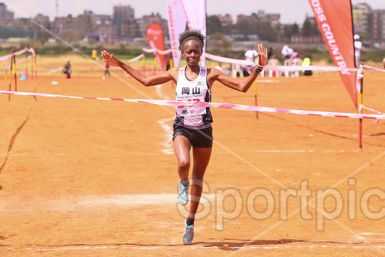 Diana Wanza celebrates winning the 10km Athletics Kenya Nairobi Region Cross Country Championship held at the Kasarani open grounds on October 10, 2025. AK is targeting to select a formidable team for the National Cross-Country Championships set for the 25th of this month in Eldoret. Photo/Sportpicha