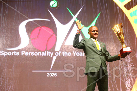 Ian Kahinga celebrates winning the Sportsman of the year with disability during the 22nd Edition of Sports Personality of the Year Awards at Uhuru Gardens in Nairobi on April 10, 2026. Photo/Sportpicha