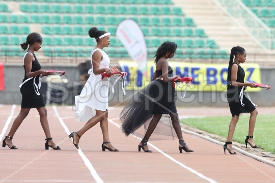 Models carry awards for presentation during the National Athletics Championships 2019 at Nyayo National stadium in Nairobi on August 22, 2019. PhotoStafford Ondegowww.sportpicha.com