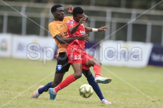 Collins Shichenje L of AFC Leopards SC contest for ball with Denis Magige of Bandari FC during their FKF-Premier League match at Thika Municipal stadium in Kiambu County on July 09, 2021. PhotoEvans OdariSportpicha