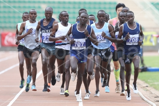 Athletes competes in the 5000m final during the National Athletics Championships 2019 at Nyayo National stadium in Nairobi on August 22, 2019. PhotoStafford Ondegowww.sportpicha.com