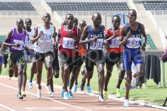 Elijah Managoi R leads the pack iin the 1500m heat during the National Athletics Championships 2019 at Nyayo national stadium in Nairobi on August 20, 2019. PhotoStafford Ondego