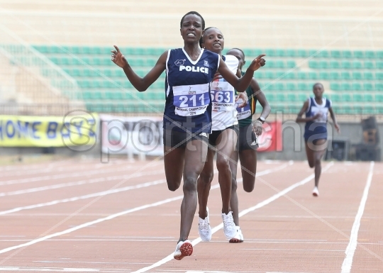 Agnes Tirop L wins the 10,000KM women final ahead of Hellen Obiri during Day Two of the National Athletics Championships 2019 at Nyayo national stadium in Nairobi on August 21, 2019. PhotoStafford Ondegowww.sportpicha.com