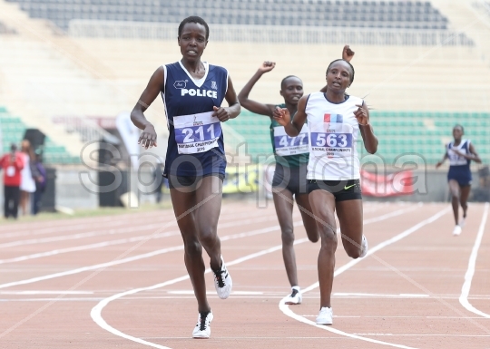 Agnes Tirop L wins the 10,000KM women final ahead of Hellen Obiri during Day Two of the National Athletics Championships 2019 at Nyayo national stadium in Nairobi on August 21, 2019. PhotoStafford Ondegowww.sportpicha.com