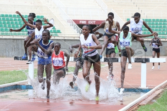 Athletes competes in the 3,000m SC women final during Day Two of the National Athletics Championships 2019 at Nyayo national stadium in Nairobi on August 21, 2019. PhotoStafford Ondegowww.sportpicha.com