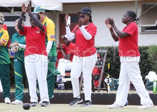 Bowling Kenyan team celebrates a point during their Africa States Tournament 2019 match against South Africa held at the Nairobi Club in Nairobi on August 20, 2019. PhotoStafford Ondegowww.sportpicha.com