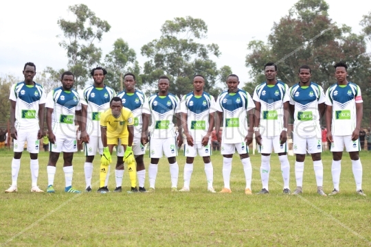 KCB FC players line-up against Sony Sugar FC during their Kenyan Premier League match at Green Stadium in Awendo on August 31, 2019. PhotoRodgers Odhiambowww.sportpicha.com