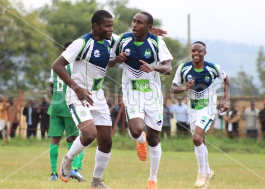 KCB FC players celebrates Stephen Warurus goal against Sony Sugar FC during their Kenyan Premier League match at Green Stadium in Awendo on August 31, 2019. PhotoRodgers Odhiambowww.sportpicha.com