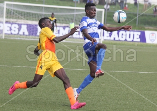 AFC Leopards Hedmond Mauda beats Muhoroni FC Wellingtone Ochieng in their Sport Pesa Premier League at the Moi Stadium Kisumu. PhotoTOM OGWEL
