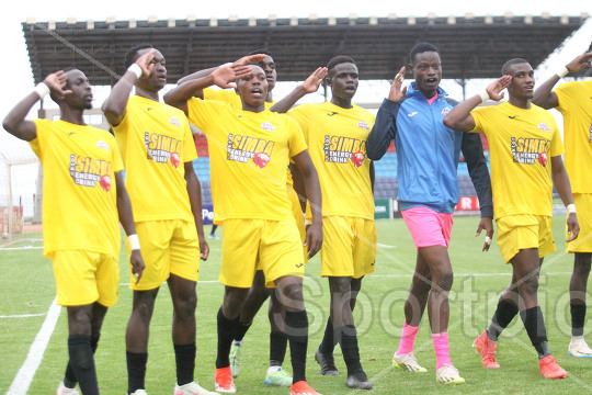 Bidco United FC players celebrate scoring against Ulinzi Stars FC during their Sportpesa League match at Dandora Stadium in Nairobi on October 29, 2025. Bidco United FC won 2-1. Photo/Sportpicha