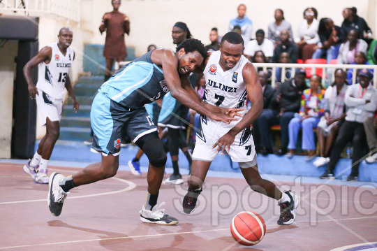 Brans Mutiso (Left) of Ulinzi Warriors challenge James Maina of Umoja Basketball tussle for ball during their East Africa Basketball Champions Cup half Finals at Nyayo National Stadium on October 09, 2025. Photo/Sportpicha