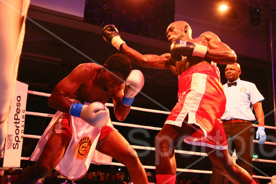 John Juma (Red Corner) fight Charles Chilala of Tanzania during the WBA Africa Gold Super Lightweight title 10-round bout at The Edge Convention Centre in Nairobi on Friday April 3, 2026. John Juma won a TKO. Photo/Sportpicha